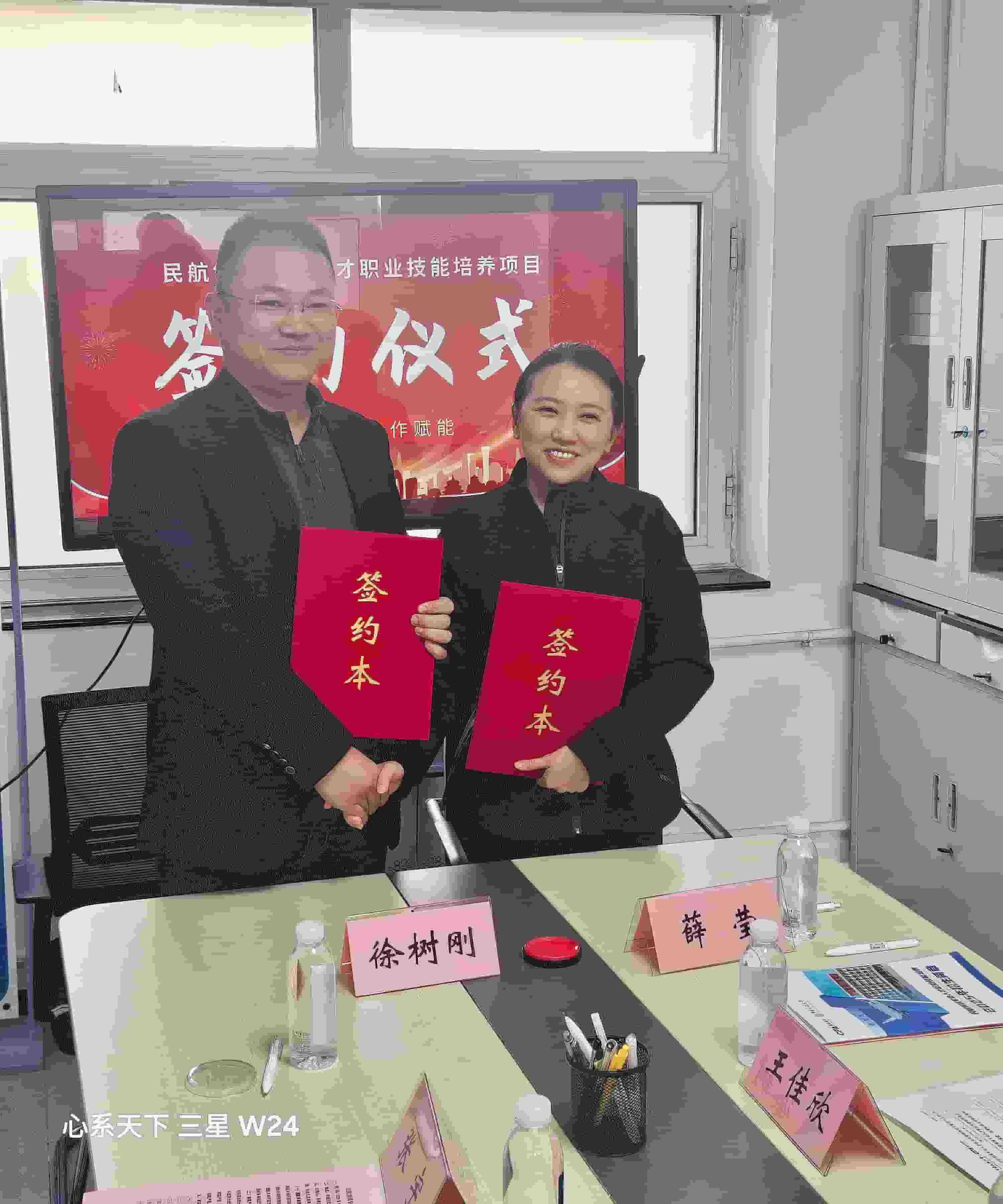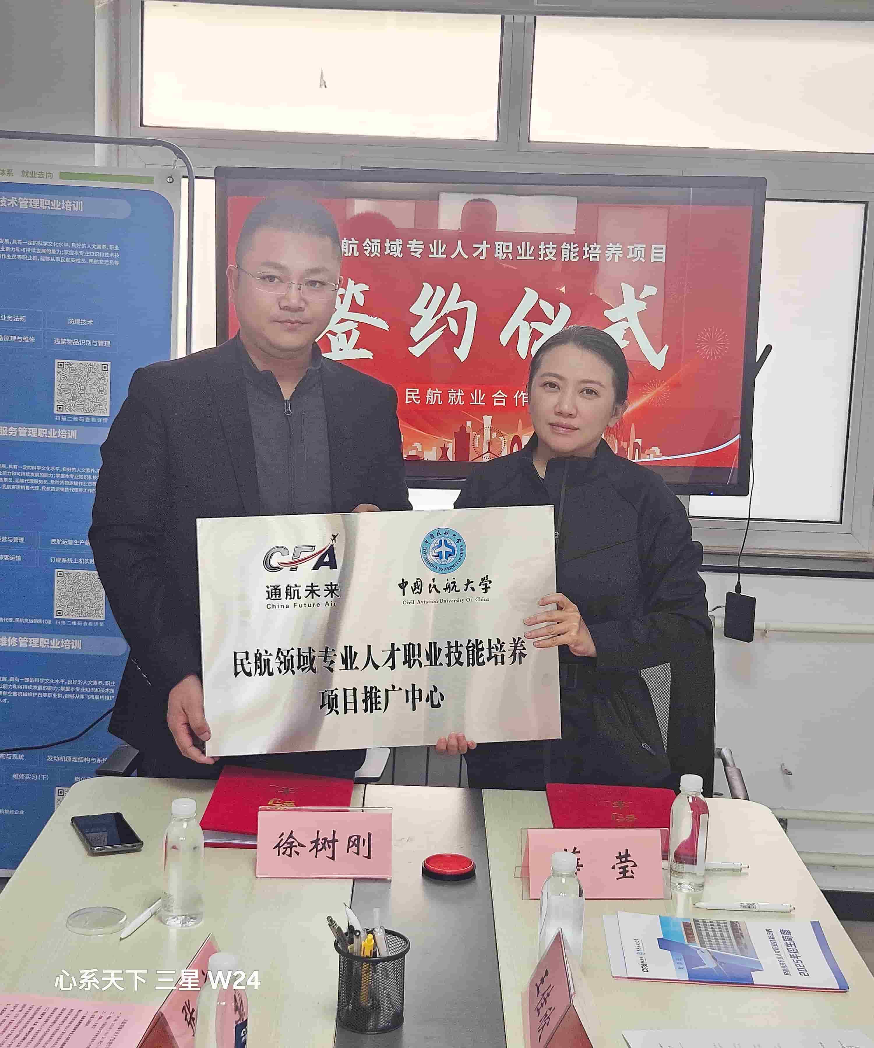 2025 年 10 月 21 日 14:30,民航领域专业人才技能培养项目合作签约仪式在中国民航大学学术交流中心外教楼 103 办公室隆重举行。